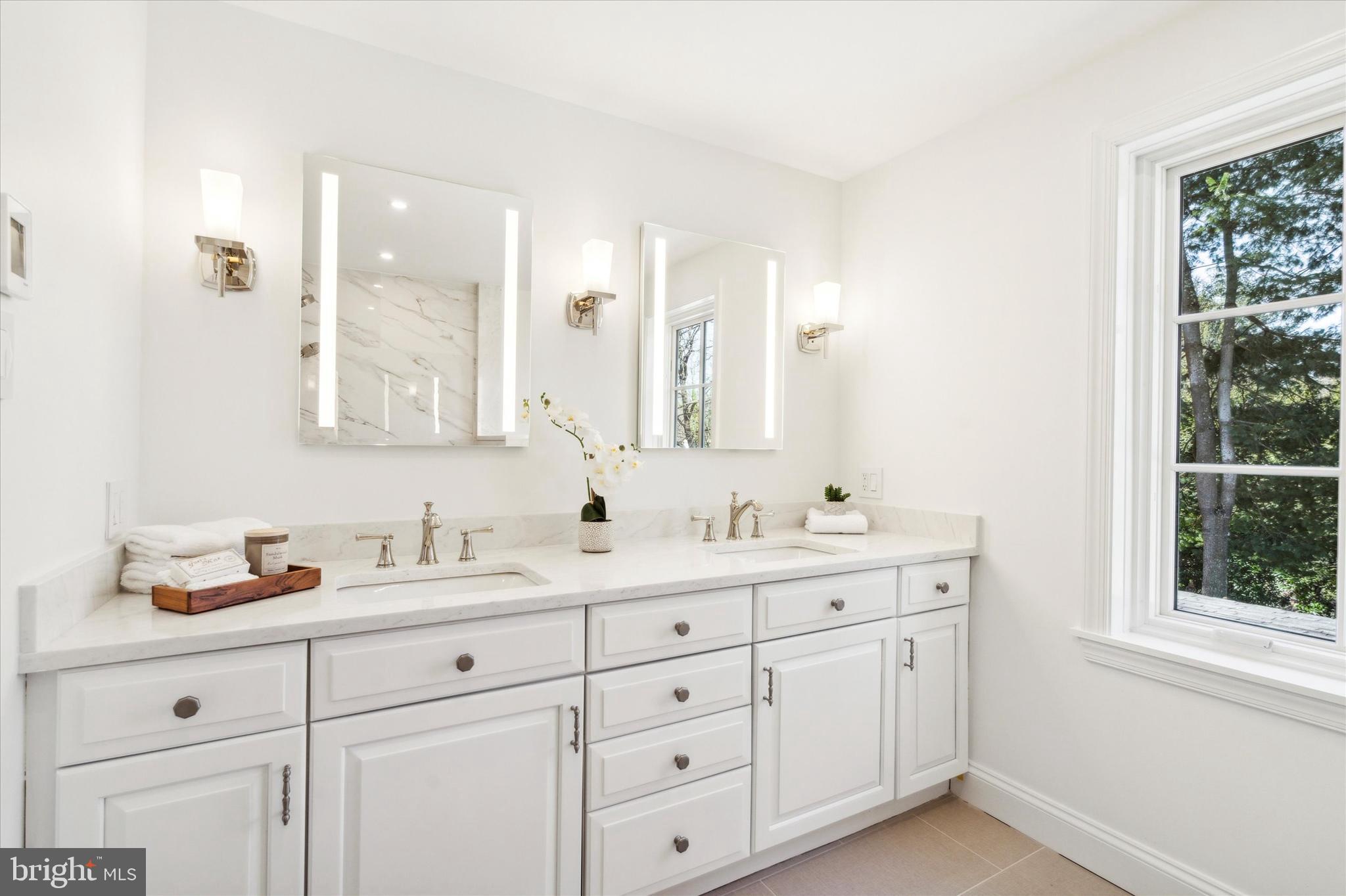 Be sure to watch the full motion video tour! Located on a small cul-de-sac street off of Ithan Avenue, 431 N. Ithan Drive is a classic and timeless 5 bedroom, 3.5 bath brick colonial home that gets noticed. It offers gleaming hardwood floors throughout most of the home, a gorgeous new kitchen and primary bath, 2 car-attached garage, a home generator and a beautiful rear yard! This home features 3,553 sf of above grade living space and 1,288 total in the lower level including 530 sf of finished space. Step inside and to the left of the foyer find a formal living room that is spacious and bright with a wood-burning fireplace. To the right of the foyer lies a private first-floor office with built-in bookcases and a gas fireplace. Don't need a first-floor office? This room could also be used as a cozy den or retreat. In the center of the home is the elegant dining room appointed with chair rail moldings. While formal on its own, it is also nicely located in the center of the living room, kitchen, and family room. To the right of the dining room, you will find a gorgeous kitchen that was completely and thoughtfully redone about 3 years ago to include a lovely eat-in seating area with bay windows looking out to the rear yard, an abundance of rich white cabinets, a mahogany coffee bar, large island with seating for 3, quartz countertops, and high-end appliances including a Bosch double oven, Bosch under-counter microwave and Wolf cooktop with commercial range hood. Open and visible to the kitchen is the sun-filled family room, perfect for informal gatherings and more wonderful views. Both the family room and kitchen have new 3/4 inch white oak floors. The family room has French doors that lead to the private covered porch. Off the kitchen is a new laundry/mudroom area with built-in cabinets and access to the 2-car attached garage. Completing this floor is an elegant powder room for you and your guests. Upstairs find a large, primary bedroom suite that is set apart from the other bedrooms and offers two walk-in closets and a BRAND new en suite bath with a frameless shower door, heated floors, lighted medicine cabinets, and double sink vanity. Down the hall find 4 other nicely sized bedrooms and two full baths. The 5th bedroom at the end of the hall is perfect for a guest or au pair suite (or another private home office) with a double window and a peaceful view across the valley, and can be completely closed off from the rest of the home with private or hallway access to the 3rd full bathroom! Leading from the covered porch is a meandering flagstone patio and a level, serene rear yard to enjoy many outdoor meals and gatherings, a large custom-built fire-pit area with boulder seats. Downstairs find a cozy finished space with a gas fireplace and wet bar plus a large unfinished room area for all your off-season storage. Other than for the original Marvin windows in the family room, all windows have been replaced by the current owner with beautiful, wood casement Pella windows and no-see-um screens. This location is wonderful as it is only a few blocks to Harriton High School and a short drive to the Bryn Mawr, Villanova, and Gladwyne shops, Suburban Square, King of Prussia, and many major roadways. Plus you can even walk to Ashbridge Park with its delightful playground and walking trails. Schedule your tour today as this is not one to be missed! Note: Above grade sft pulled from a very recent appraisal. Total square footage pulled from county records. Buyers should verify square footage at their discretion.